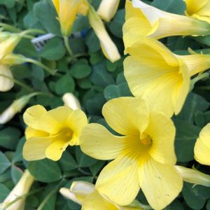 💛オキザリス コモサ(イエロー)💛 優しい色目です。 カタバミの仲間で冬の間ずっと咲き続けます。 🏷日曜ビタミンカラー♪ に参加させていただきます。 カタバミ科 カタバミ属 原産地: 南アフリカ 別名: ハナカタバミ 花言葉: 「決してあなたを捨てません」「輝く心」