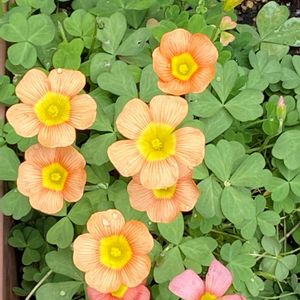 オキザリス 珍しい色のオキザリスです。 種類ははっきり分かりません。 オブツーサかな? コモサかな? 教えて頂きました。 「オキザリス・コモサ」サーモン 優しい色です。 私の好きな色🧡💛 カタバミ科 カタバミ属の多年草、一年草