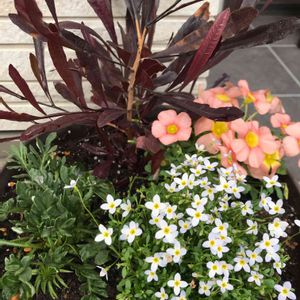春のホームセンターは誘惑がいっぱい。 ガザニア、ヒナソウ、オキザリス 予定になくお迎えしました。 ドドナエアは以前の寄植えからの流用。