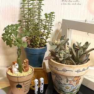 棒の日🏷️ ウサぴょん祭り🏷️ ワンワン祭り🏷️ 投稿させて頂きます🐶🐰💕 先月 複数の兎耳たちをカットして 土も丸ごと更新してみました 足元には葉っぱを並べて ベビーが出てきたら 一家族で育てたいなー🪴 棒多肉は mikakoさんから頂いた七宝樹と 結藍ばぁばさんから頂いた ガガイモ・ギガンティア どちらも元気にしています 七宝樹は葉っぱが枯れたところですね ソニエンくん エンジェル祭りがなくなってから ちょっと出番が減ったかな? オケツの日🏷️だけじゃ ちょっとかわいそうね😂と思っていたら fumi fumiさんが以前作られてたタグで 大好き❣️ソニーエンジェル 🏷️ があるのに気付き 使っていいとのことでしたので 今日から使わせて頂くことにしました♪ 皆さんも使ってね〜👼💕 今日のリメ缶リメ鉢は まつぴよさん 45さん タニクラフトさん 私 です thanks💕