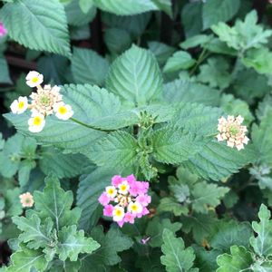 ランタナ 右咲き始め 左少し咲進む 真ん中満開 こんな風に咲いて行くのが最近わかりました