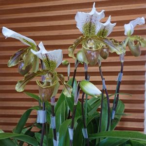 徒長した姿ですが、根性で花茎を伸ばし続けるパフィオ。開花の気配は一切感じません😅 つぼみは、今の所枯れる気配はありません。順調なのか?どうなのさ🤔初めて栽培する蘭なので判断できない😅 これまで観察を続けて感じた事。 1、水が切れるのは嫌がる。 2、柔い光をダラダラ欲しがる。 3、風通りを好む。 4、蒸れるのは嫌い。 5、培養土選びが重要。 開花まで至れば、もう少しつかめるのですが、、。