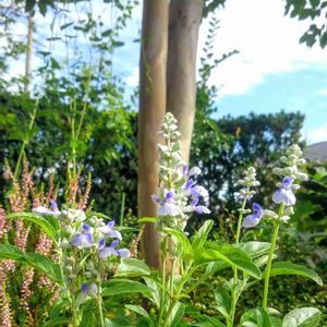 栄養系サルビアサリーファンが涼しげに🌿 今年初めて息子花壇用に2つ買ったけど 素敵なので1つは家で貰っちゃいました✨ これは是非冬越しさせたいです ヽ( *´▽`)ノ 庭に出てきたツルニチニチソウをシャラの木から下げて見ました🍃