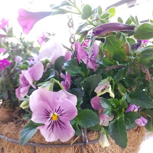 秋から一緒に植えたままのあふれ咲きペチュニアとビオラ😊😆 季節感が😱