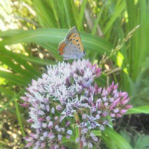 勤め先の敷地内に咲いたヨツバヒヨドリ 可愛いベニシジミが来てくれました
