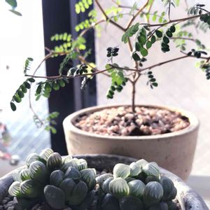 おはようございます(´∀`*) 少し寒い朝の光を浴びて ハオさんとソフォラさんの葉が透き通って とても綺麗でした♡ 全然違う種類だけどいい雰囲気だしてます✨