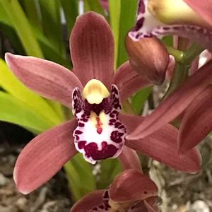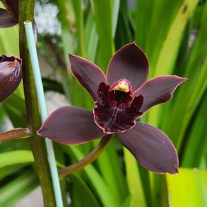 シンビジウム ブラックダイヤモンド 他のシンビジウムは花が終わって植え替えまで完了しちゃってるんですがようやく開花。毎年この子だけ遅いです。