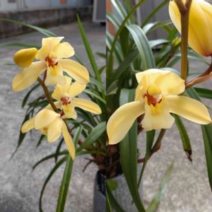 シンビジウム ハッピーフローラ ‘ゴールデン アロー’ Cymbidium Happy Flora, Bio-U (2009) ‘Golden Arrow’ 2鉢目。 来週は寒波襲来で氷点下になるかもしれないから、いくらなんでもセロジネを風除箱に突っ込まなければ❗こんなもん撮ってる場合じゃないね😱