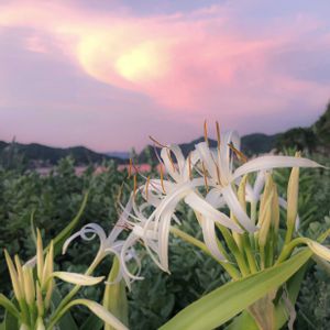 海辺のキャンプにいきました。 お隣のロッジでは、バーベキューですが、私たちは暑いから火を使わない刺身です。笑 後片付けしたくない…という本音も笑 地元の鯵がめちゃ美味い。 海風がとても涼しくて、シャワーの後のビール、サイコー。 海辺の植物たち キレイです。 帰ってきたら、庭のハマユウも二本目の花が咲いていました。