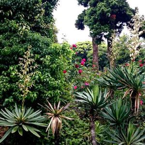 江の島サムエル・コッキング苑フラワーフェスタにて④ 苑内にヤシの木がたくさん🌴ユッカのお花も蕾が開いて来てます✨