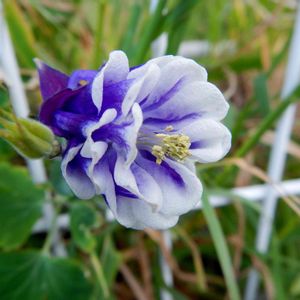 道端で美しくしていました。ほんとにきれい。アクイレギア(西洋オダマキ) ウインキーダブル ダークブルー&ホワイトと言う名前だと教えていただきました。