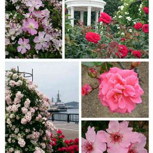 横須賀ヴェルニー公園の薔薇🌹 上左…桜木(サクラギ) 上右…ルージュメイアン、つるアイスバーグ 下左…伽羅奢(ガラシャ)、ペイントザタウン 中右…湘南ファンタジー 下右…デンティベス