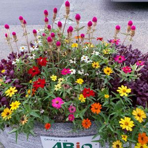 こんばんは😊 寄せ植えはこんな感じで素敵でしたよ〜😊💜❤️🧡💛💚🤎