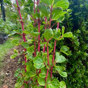 花は咲きません 茎がピンク色でかわいい!と思い買いました お名前は何? みなさん、教えて下さい♪ →マルバビユと判明しました! ありがとうございました♪