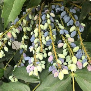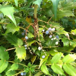 「ヒイラギナンテン(柊南天)」の実🍒 白く粉を吹いたような果実は、ブドウのようですネ❣️