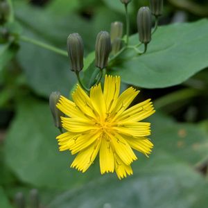 「ヤクシソウ」 名前は、茎の葉が薬師如来の光背(後光を表現した飾り)に似ているからついたとの事。