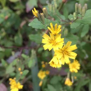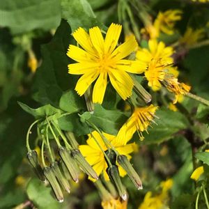 ヤクシソウ 別名 チチクサ 今朝の お散歩で見つけた お花🌼 別名のチチクサは葉茎を切ると白い乳液が出るところから付いたそうで若芽は食べられます。