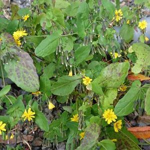 ヤクシソウ 山中の道路脇でたくさん咲いています。
