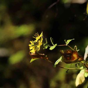 ヤクシソウ(薬師草) キク科、オニタビラコ属の二年草 花期:9月〜11月 枝の上部に黄色い花を固まって咲かせる。 花は上向きに開くが、花が終わると下向きになる。 色は違いますが、アキノノゲシの花に似ていますね。