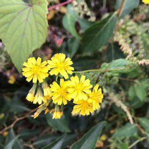 おはようございま〜す♬☁️ 山道の切り立った土手に群生との出会い🌿🌼🌿🌼🌿🌼 ✿ヤクシソウ(薬師草)✿ •花は上を向いて平に咲き(直径1.5㎝)花後はうなだれ下向きに... •別名:乳草(チチクサと呼ばれ茎葉を折ると白い乳液を出す) •腫れ物に民間薬としての利用も... •花言葉:「賑やか」😊😃😆💕 📷:2017/10/4
