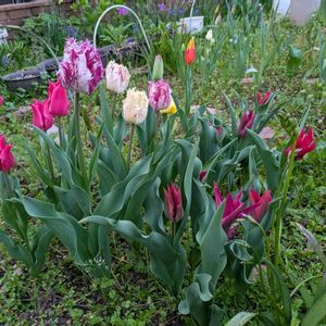 今朝の庭から… 7:03〜7:43 咲き始めから満開まで ① ミニチューリップ.クリサンサ ② 赤5と桃色10の寄せ植え(富山産) ③ 今日も園芸日和〜♪ ④ 地植えのチューリップ いろいろ ⑤ いつ見ても閉じてる?富山の ライトピンクプリンス♡