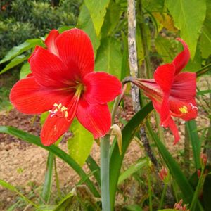 お早うございます。 アマリリス 秋にも咲くんですねー。💓 足元には彼岸花の蕾が ありました。😃 稲積癒やしの里にて。
