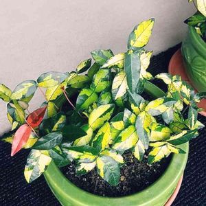 ようやくトリカラーの黄金カズラをテラコッタ手に入れて植えました😄 ただ、この後は台の上に置き、後ろにトレリス、手作り梯子、流木のいずれかを置いて誘引したいと考え中🤔