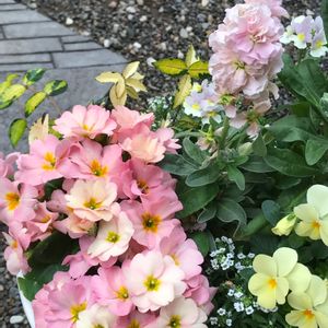 プリムラジュリアン。 これでもかぁ〜💕 ってぐらい、 勢いよく、たくさん咲いてきました❣️ 癒やし系の寄せ植えですが、 渇‼️をもらえます。