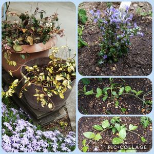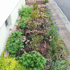 花壇がにぎやかになってきました😊 手前の花壇はちょっと詰め込み過ぎたかな🤭 奥の花壇は、芝桜の新芽がモリモリになってきました😊