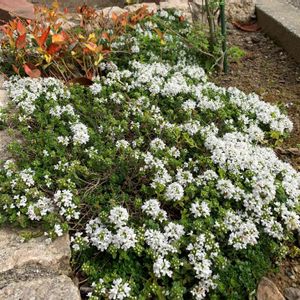 雪のように綺麗な白いジャコウソウ 紅葉時期でもないのに鮮やかな黄金カズラ 放置でも育ってくれる喜び😆