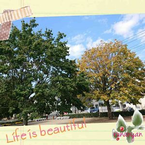 大きなコナラ達(*^^*) 葉っぱの色が随分違いますが、別の種類なのでしょうか? 昨日、たくさんのどんぐりが落ちていましたが、台風で更に落ちそうです。 今回の台風怖いなぁ(@_@;)