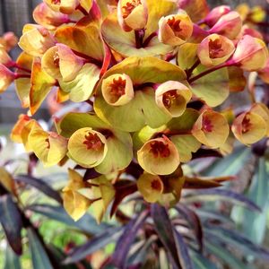 こんにちわ🎵 庭の ユーフォルビア 🧡ゴールデンレインボー 小さなオメメ 優しい感じ(人 •͈ᴗ•͈)💝