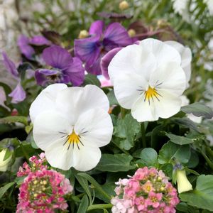 冬咲くパンジー ナチュレの寄せ植え🌿.∘ ほんのりクリーム色が可愛い(*˘︶˘*).。.:*♡ ✨ 🏷白い水曜日♡
