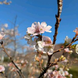 四季桜✨ 12/7名古屋市東谷山フルーツパークにて とてもよい天気だったので、ほぼ白の薄ピンクが青空に映えてここだけ春のようでした😊 🏷️白い水曜日♡