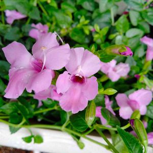 おはようございます。 今年もネメシアさんの ピンクレモネードを 自作プランターに入れました。 玄関先に置いているので、 毎日の出勤、帰宅時にいい香りが、 漂ってます。😁 オキザリス桃の輝きをお迎え。 初なので、お花が開いたり 閉じたりにへぇ~です。 ブラックデライトさんは お日様にあたると違った色が 出て来るのを発見しました。 去年たくさん挿し木した ブーゲンさんを庭のビニ温室に 入れたら色が付きはじめました。 ちょっと冬越しが心配です。 最後は、もう終わりの トレニアとカリブラコアさん。 一緒の鉢に入れたけど トレニアさんが勝っちゃたなぁ〜。