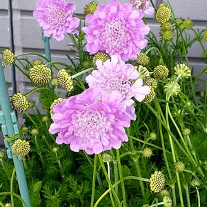 スカビオサ クイズサーモンピンク💕💕 どんどん背が伸びるので支柱をしっかり添わせています。そして💕次々と花開いています(*^^*) 雨風でダメになるんじゃないの?と内心ヒヤヒヤと見守っていましたが、ようやく開いてくれて一安心ε-(´∀`*)ホッ でもまた雨で花が重くなるとクターとして心配💦 梅雨寒な期間が長いなと感じていましたが、 まとまった雨☔降らぬまま 梅雨明けしたそうで、さっきは突然の雷雨。 ちょっと前には 20℃以下だったのに連日の35℃越え 極端な天候で体がついていかないです。 まだ庭にはビオラもあって、 どうしましょ。 次の休みにはしっかりと庭の片付けをするかも知れません。 そういえば、パン屋さんでアルバイトを始めた我が家の末っ子ちゃん 。 お客様への対応を丁寧に!と心掛け、 出た言葉が、 「○○円になります」 厳しく優しい先輩が 「○○円です」だからね💦とちゃんと直してくれたそうです。 ありがたいことですよね🙏 🏷ピンク♥ピンク ピンク!ピンク!ピンク!
