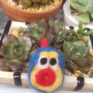 チクチクしたわよー😂💕 みてみて〜 羊毛フェルトでチキン🐔💕 一回ブスッと指刺しちゃった🥲 血~でた🥲💦 ✨初✨羊毛フェルトの割にいい出来栄え😂💕 自画自賛🤣🤣🤣 誰と写真撮ろうかなぁ〜と…… #サブセシリスさん なんだこのギャップ🤣🤣🤣 変なテンション入ってます💫 そして…… 昨日から寒いの……🥶 寒い雨🥶 半袖じゃ無理🥶 明日も雨で寒そうだから、 多肉の水やり雨任せ☔ 秋だと思って動き出せ😂💕