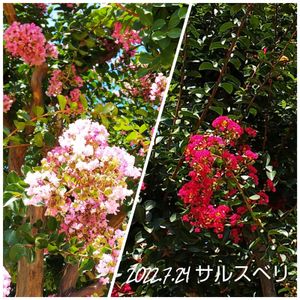 下ばかり見ながら歩いていて、ふと見上げると【サルスベリ】2色で咲いてました〜🌳