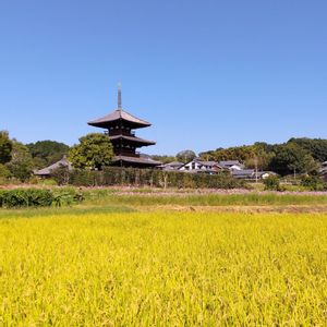 法起寺と実りの稲穂🎵 黄金に輝く稲穂🌾