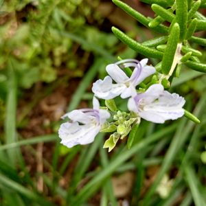 ハーブ 【ローズマリー】 シソ科 常緑 葉茎のグリーンノートの 香りと ほんのり紫💜の蕊が カールして…。
