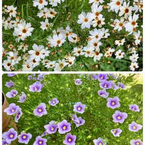 2年目のコレオプシスとニーレンベルギア🤍💜 暑さに負けずに咲いてくれる頼もしい小花達✿︎ コレオプシスは花壇、ニーレンベルギアは鉢植えです🪴 pic撮った後切り戻しました♬✨