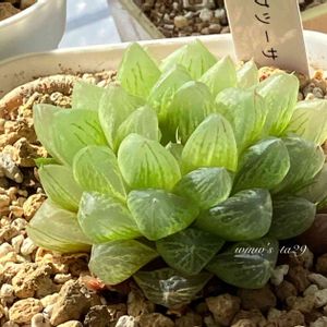 マスカットみたいな涼やかな色のレッドオブツーサさん😁 底面給水で2晩に分けて水やり🚰 土がシュワシュワいってて😚 喜んでるみたい♡