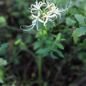 朝からお恥ずかしい話です。 咲かない咲かないと思っていたクリーム色の白花彼岸花。…咲いていました、1輪だけ!赤より早く咲いていたもよう…😓 思った所よりずっと奥。目印棒も草に埋もれて…。草刈りが追い付いていない今年です…😭