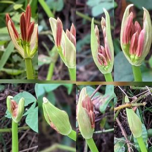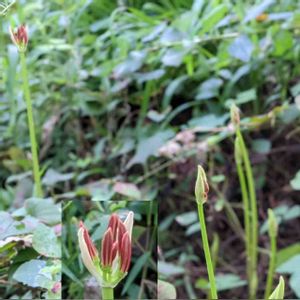 今朝の彼岸花…。 全部で10本出ています。10年以上前に上の庭から斜面に下る径の途中にこの赤とクリームの球根を埋めました。…それは何個だったのか…?毎年出始めに気付かず残念な思いをしており、今年こそと每日見ていたつもりがやはり…。😅 反対側のクリーム色の方こそはと見ているのですが、未だうんともすんとも…。花友さんの表現をもじってお借りすれば、"ヒ”とも出ていません。 リコリスという呼び方もありますが、彼岸花はリコリス、けれどリコリスは彼岸花ばかりでは無いという関係のようですね。お盆の後に咲いたキツネノカミソリもリコリスの仲間だそうです。 私の植えた彼岸花もリコリスとして売られていたような気もするのですが、この彼岸花はリコリス、と言って間違いでは無いのかもしれませんね。 yuyuさんの🏷金曜日の蕾たち… にお願い致します。