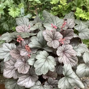 ヒューケラドルチェ シルバーガムドロップが咲き始めました。 春にも咲きましたが、2度目の開花です。 こちらの株は2021年秋にPW花苗アンバサダーでいただいたもの。すっかり大株になりました。