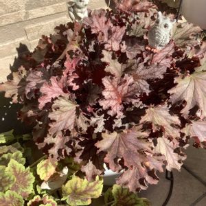 ヒューケラドルチェ スイートプリンセス。とても大株になりました。艶消しで葉脈の目立つ葉が魅力です。葉の色は温度が低くなると赤みを増します。