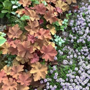 今の時期だけ楽しめる私の庭のお気に入りのコラボ。満開のクリーピングタイムとヒューケラキャラメル。💕