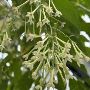 おはようございます 神代植物公園 夜間公開 🤍ヤコウボク🤍夜香花(ヤコウカ)🤍 ナス科 西インド諸島原産 薄緑色の小さな花は、夜になると開き甘い香りを放ちます。 細長い筒のようでしたが、夜になると先のほうが開いてきました