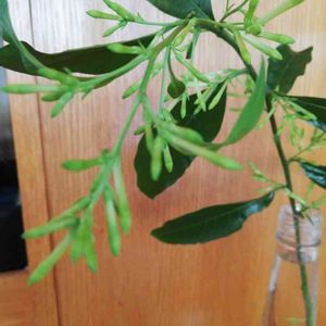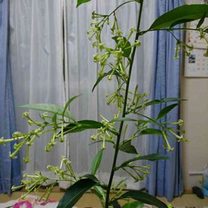 お花屋さんの一番隅に追いやられていたのを見つけ、タダで持っていきなと言われた処分品扱いだったこの娘… 我が家につれて帰り、大事に育てたらこんなに大きくなってくれました。 ちっちゃな花をい~っぱい咲かせ、名前の通り「夜に甘い香り」で楽しませてくれました。 主人が癌の手術のため入院中も一房切って病室の棚に飾ると、夜7時頃になると良い香りで傷ついた心を癒してくれました。 夜勤の看護師さん達も香りに感心してこの娘に会いに来ていたそうです。 「鶴の恩返し」ならねぬ 「夜香木」の恩返しのお陰で、 主人も元気になりました! 本当に感謝です。これからも 大事に育てるからよろしくね🍀