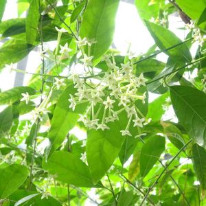 お花屋さんの一番隅に追いやられていたのを見つけ、タダで持っていきなと言われた処分品扱いだったこの娘… 我が家につれて帰り、大事に育てたらこんなに大きくなってくれました。 ちっちゃな花をい~っぱい咲かせ、名前の通り「夜に甘い香り」で楽しませてくれました。 主人が癌の手術のため入院中も一房切って病室の棚に飾ると、夜7時頃になると良い香りで傷ついた心を癒してくれました。 夜勤の看護師さん達も香りに感心してこの娘に会いに来ていたそうです。 「鶴の恩返し」ならねぬ 「夜香木」の恩返しのお陰で、 主人も元気になりました! 本当に感謝です。 私達夫婦にとってはとっておきの一番大事な可愛い娘です🍀